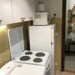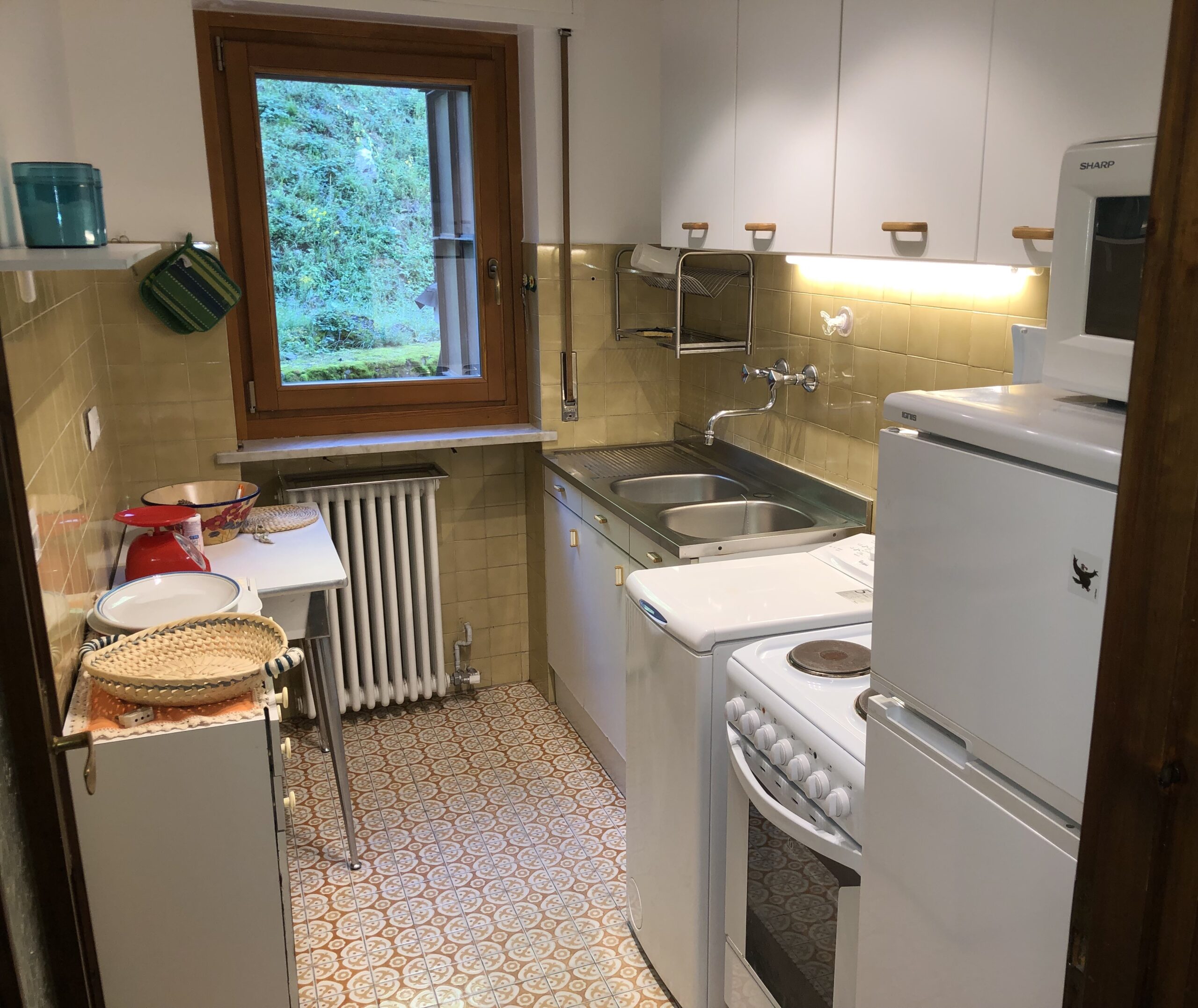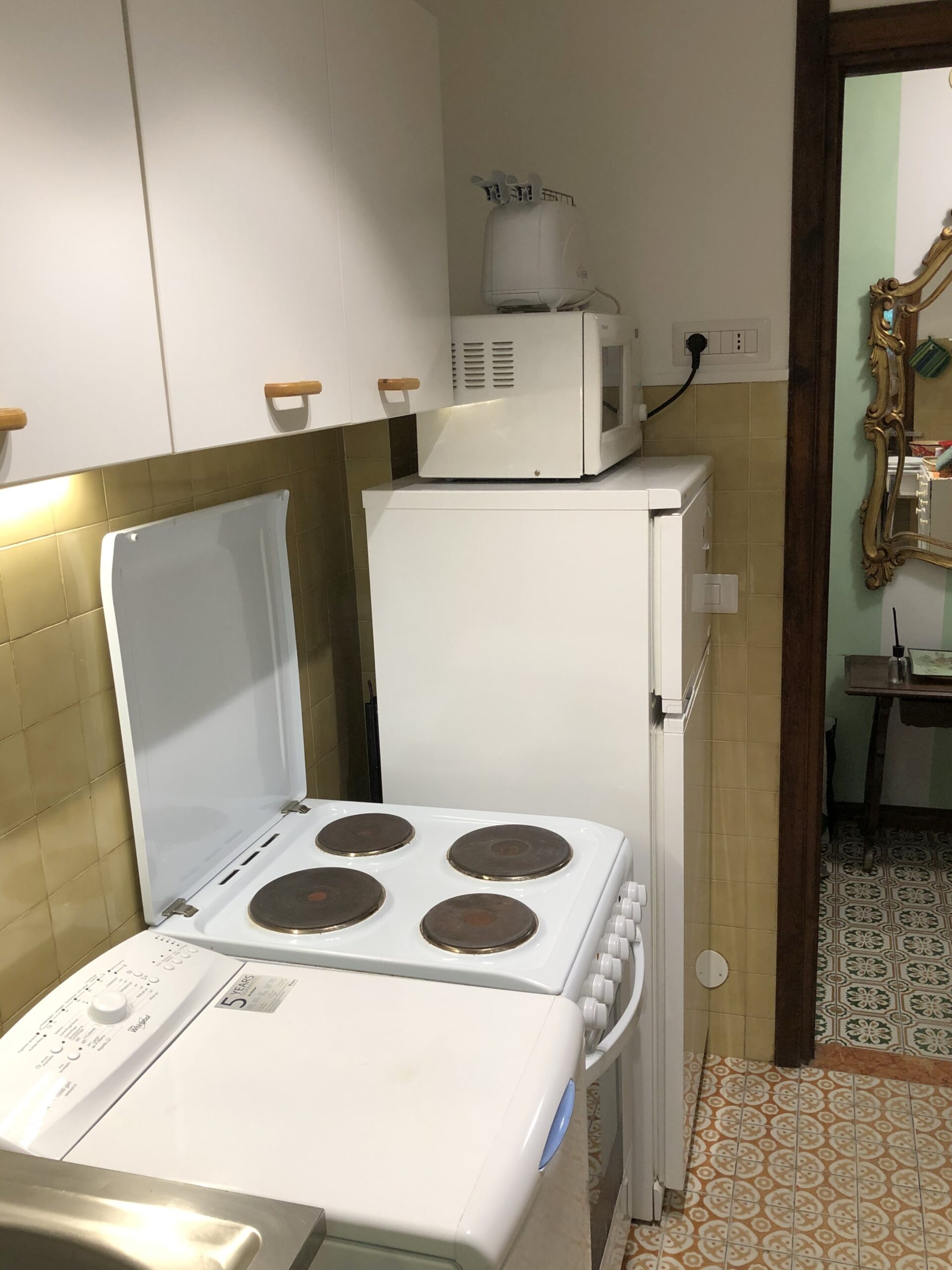 in cucina: lavatrice, frigorifero con freezer e altri piccoli elettrodomestici. Sono a disposizione anche utensili come stoviglie, posate e biancheria da cucina;