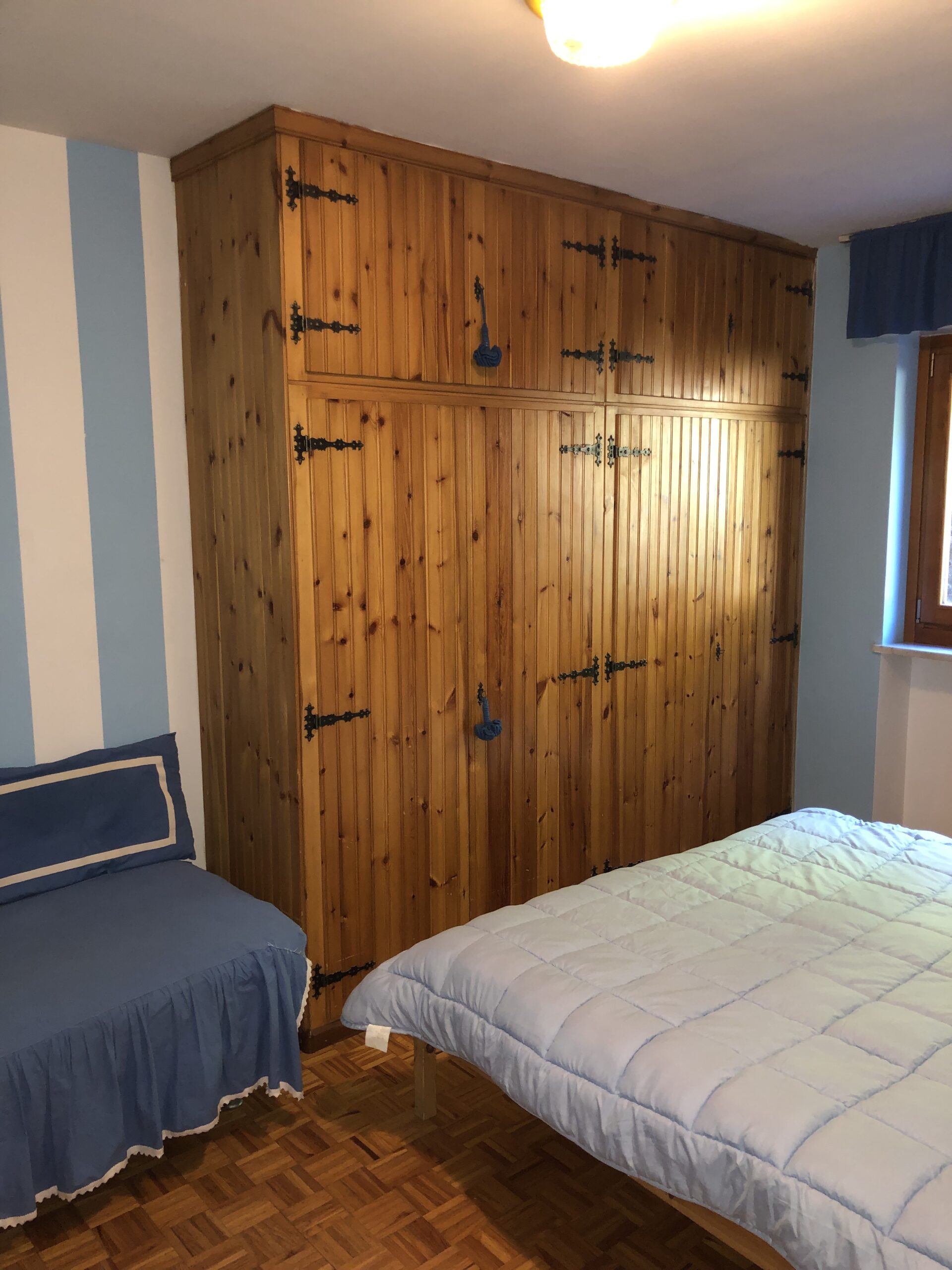 in camera da letto: letto matrimoniale, letto singolo, armadio a muro e biancheria;