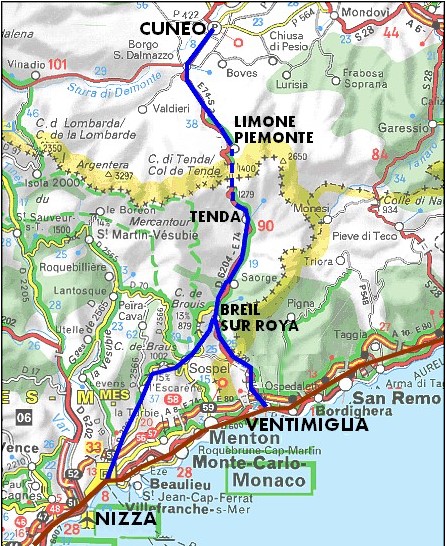 Nizza e Montecarlo tramite il traforo del Colle di Tenda. La stazione